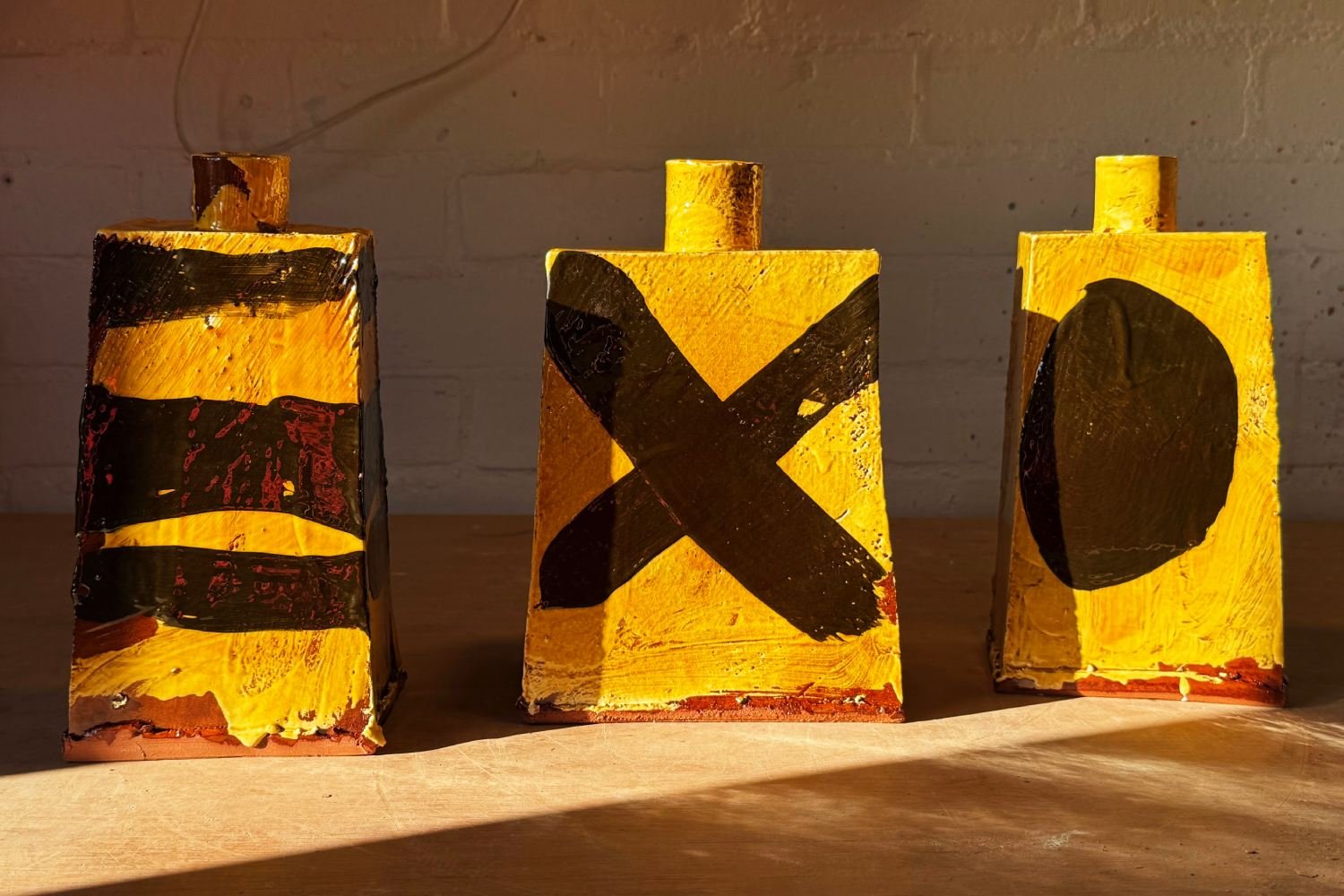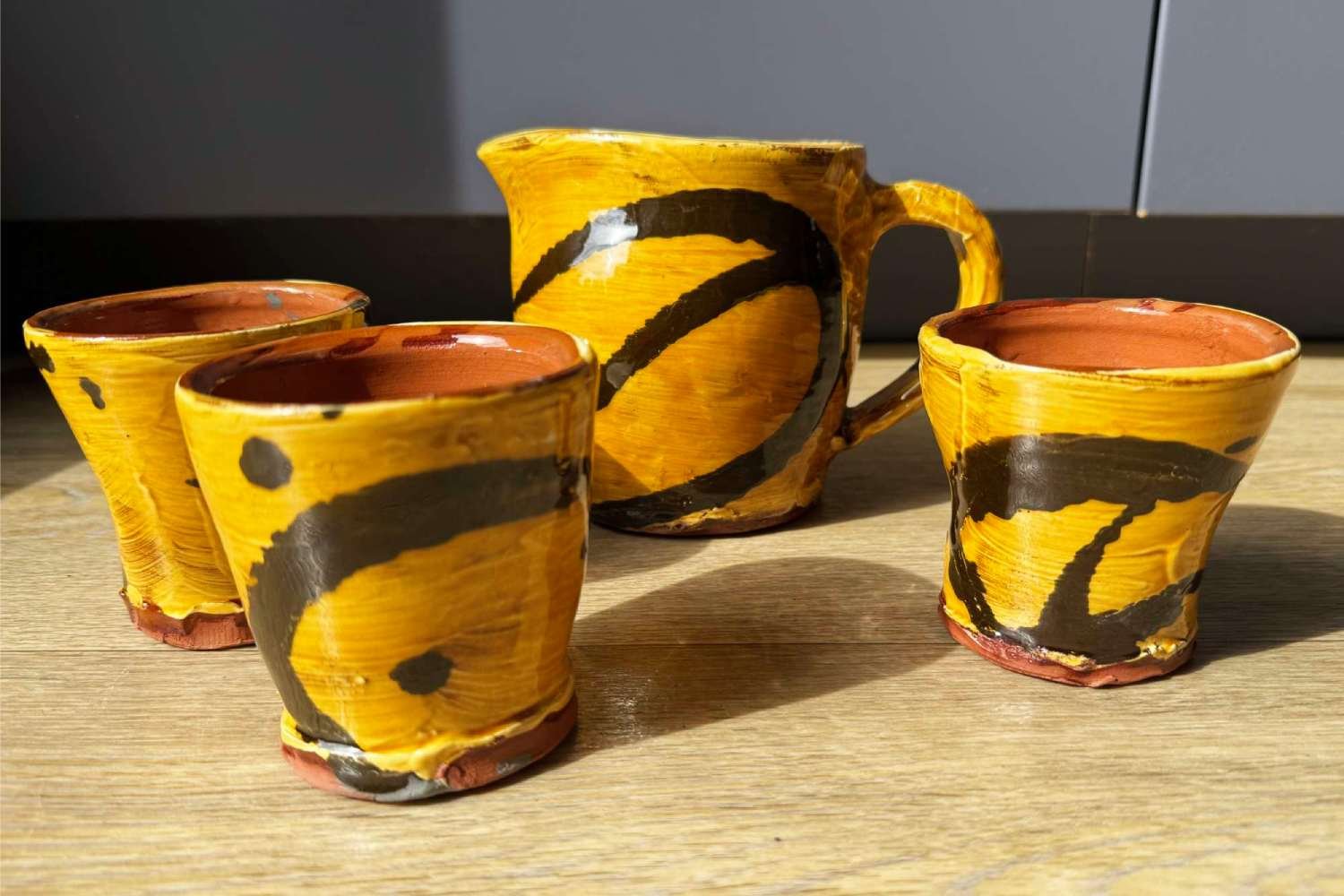 I work mostly in terracotta, building by hand and at the wheel from my Suffolk workshop. The ceramics I make seem to be as much a canvas for bold decoration as they are functional objects in themselves, so alongside the brushwork, slip pouring and trailing, are often covered with the maker's marks, finger prints and little imperfections that seem to tell a story of how the pot was made.