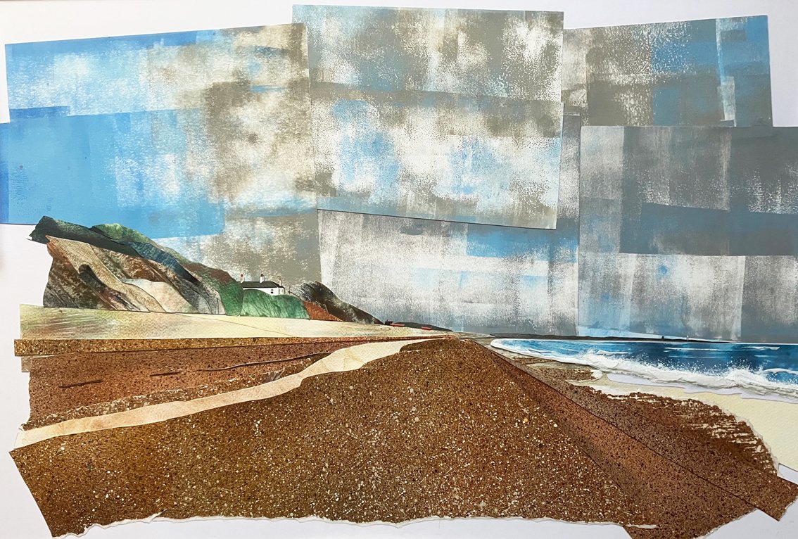 As well as using watercolours in a more realistic and traditional style I have recently, inspired by sea and shore, discovered the joy of creating more semi-abstract contemporary work with mixed media and watercolour collage. This can be more equated to marquetry, cutting and fitting together pieces of painted and textured paper to create an image.