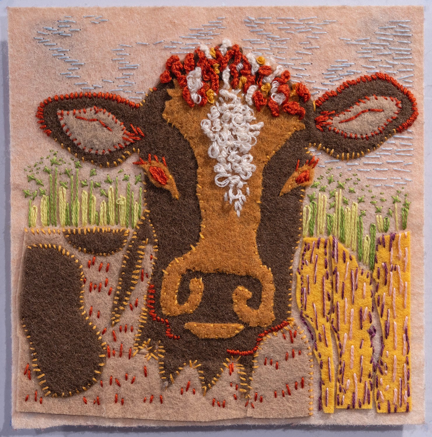 My work is playful mixed media art and craftwork, fabric hangings, papier-mâché objects, collage, print making and handmade cards.