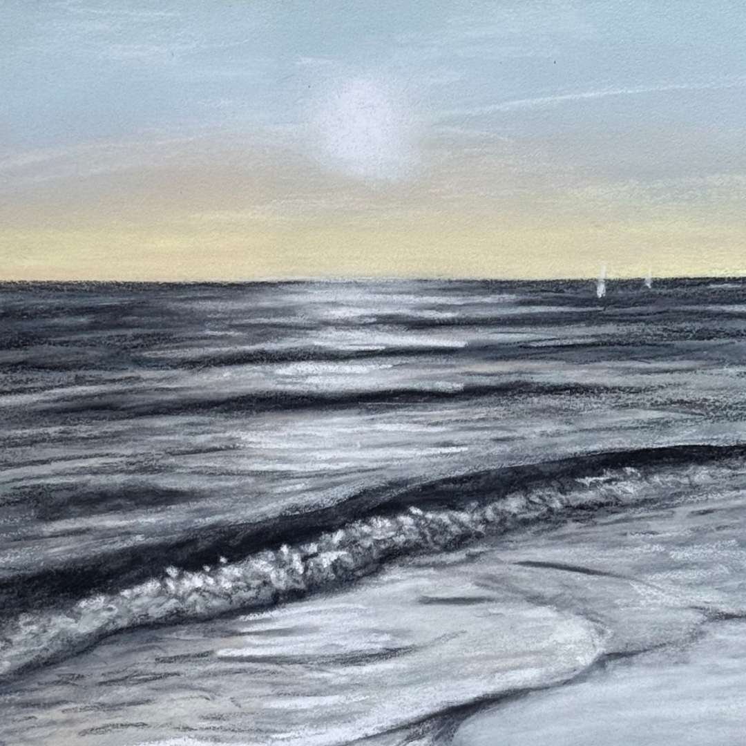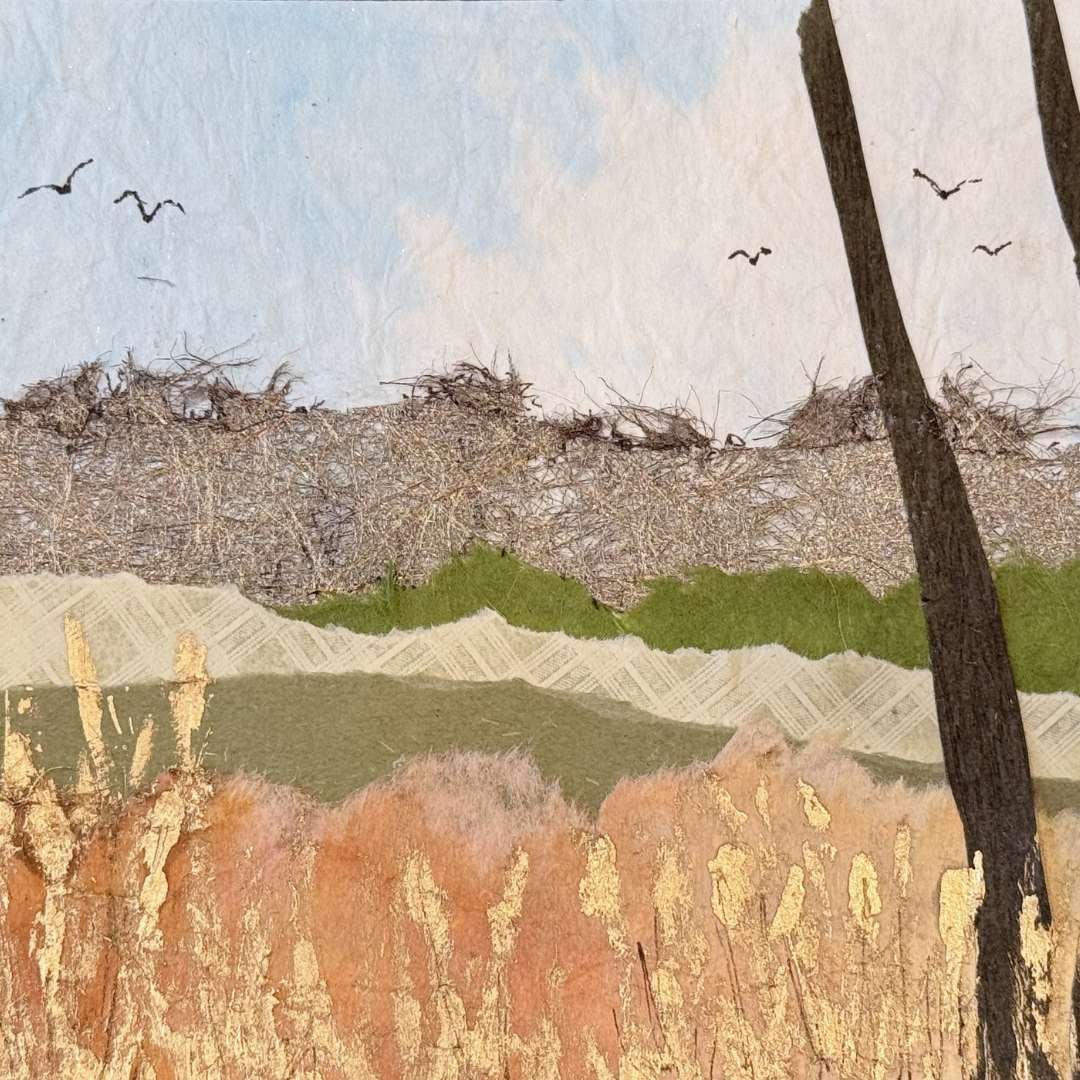 Working in acrylic, pastel and mixed media, Carla layers paint, collage and stitched elements to create textured, atmospheric pieces that explore movement, resilience and the restorative power of nature. Her work is rooted in Suffolk’s landscape but often holds a deeper narrative – moments of endurance, hope and renewal found in the natural world.