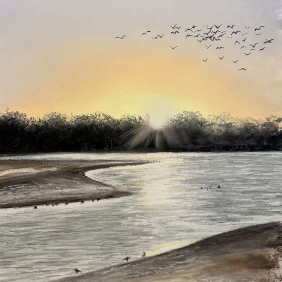 Living in the heart of Suffolk’s countryside near the coast, Carla Elizabeth draws constant inspiration from expansive skies, shifting light, tidal estuaries and the wildlife that inhabits them. Birds have become a central thread in her recent work – from the flash of a kingfisher to the quiet presence of a robin – each chosen not only for their beauty but for the stories they quietly carry.