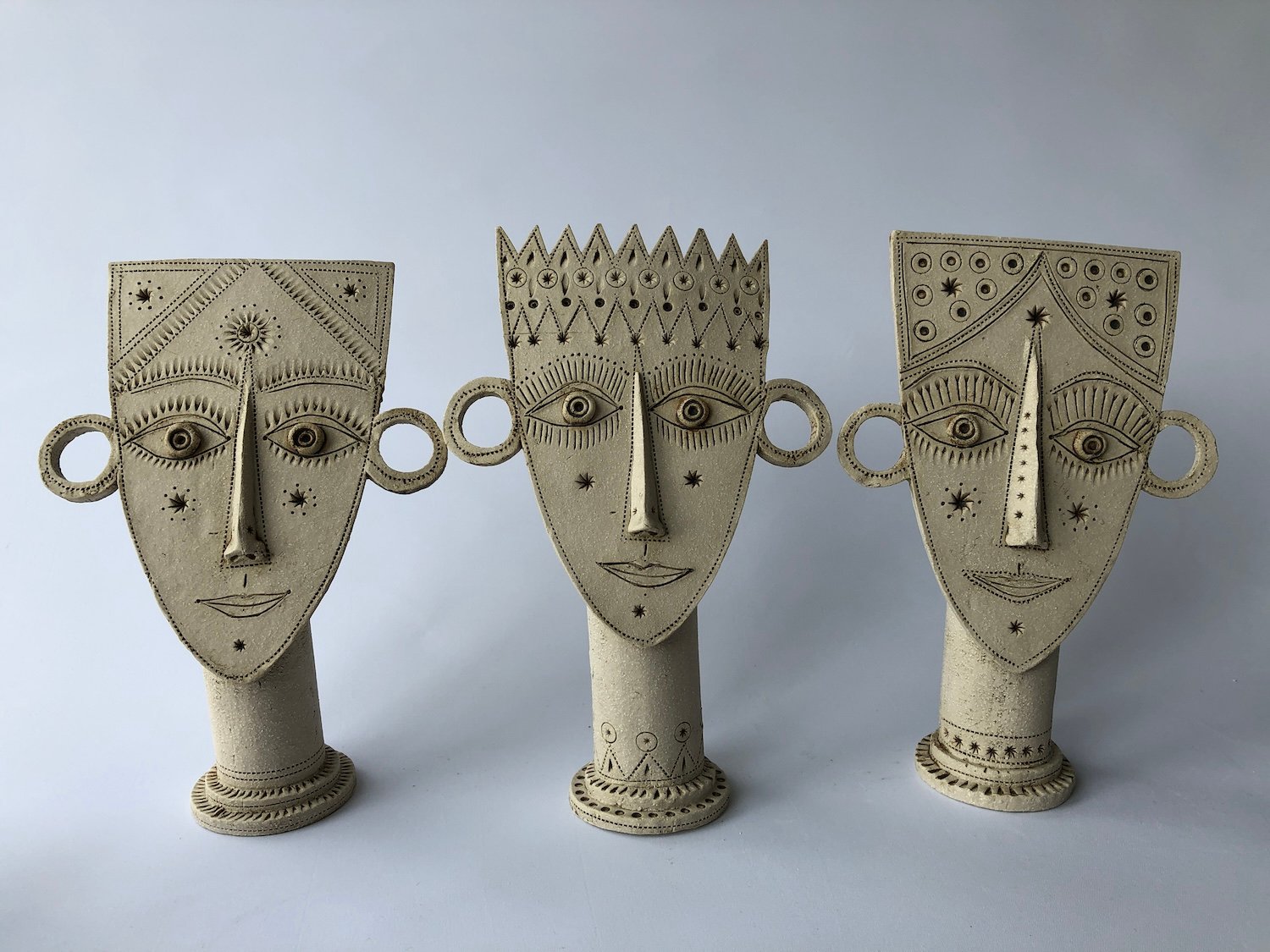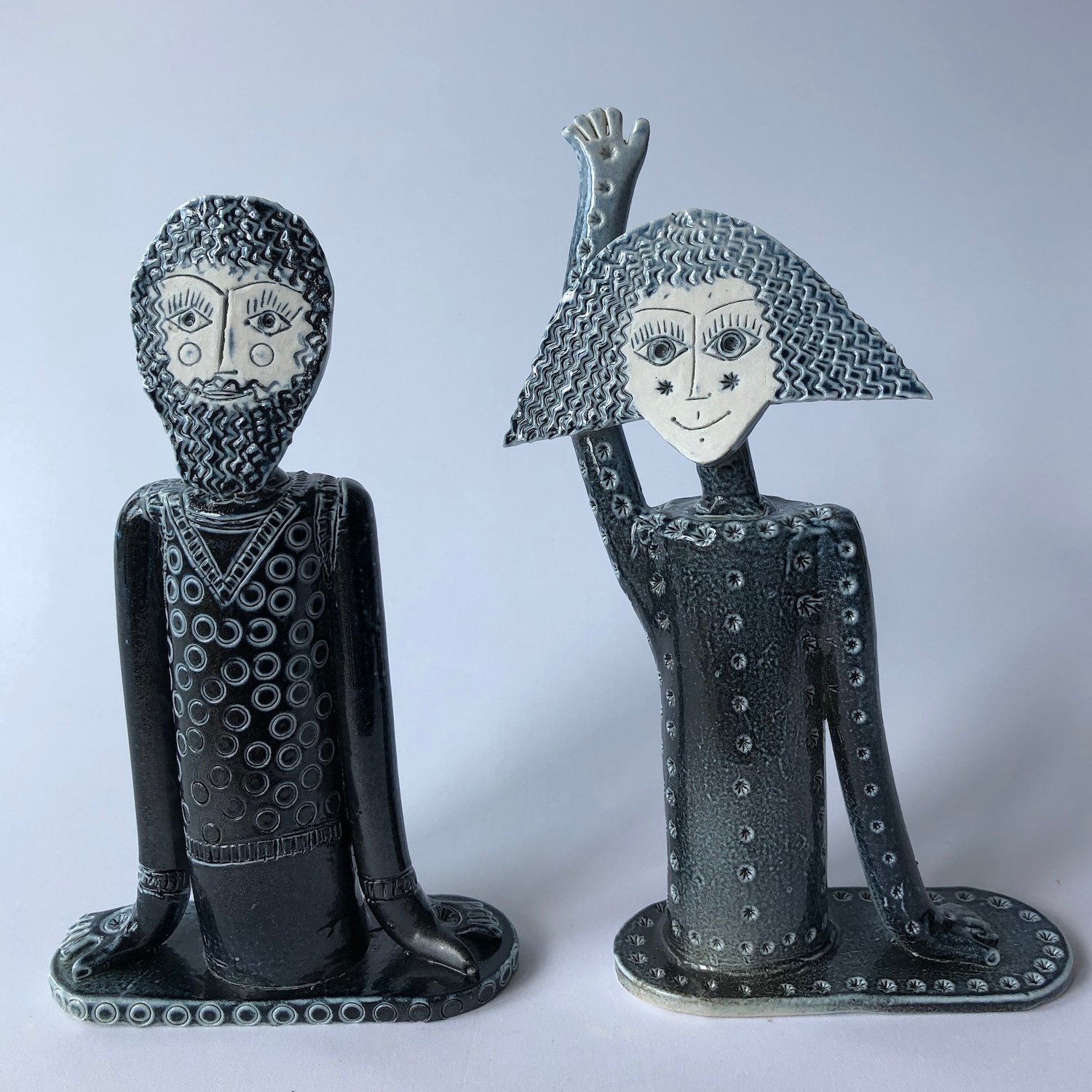 I sculpt, extrude and slab roll clay to create unusual and individual human and animal forms.