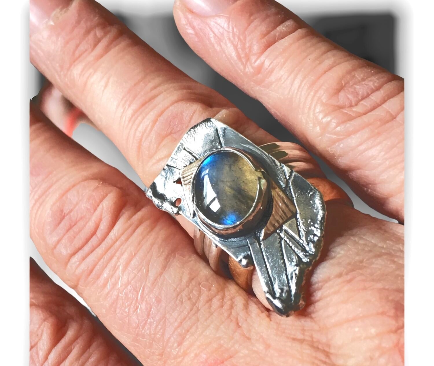 - My jewellery and works of mixed metal are often of a robust and slightly rustic style with statement pieces frequently including larger crystal gemstones or groups of stones. My jewellery is for everyone and most necklaces and some rings can be resized to fit a broader range of physiques. The Japanese aesthetic of wabi-sabi, the appreciation and acceptance of imperfection, is an aspect of my artistic style that I am happy to acknowledge and wholly embrace. I adore nature, the sea, architecture, books, music, textiles, the creativity of the world around me. The past, the present, the future and all the fabulous creativity fellow artists put out into the world bring huge inspiration. Spotting something in my peripheral vision during a walk with the dog or a trip to the local town is likely to seed an idea.