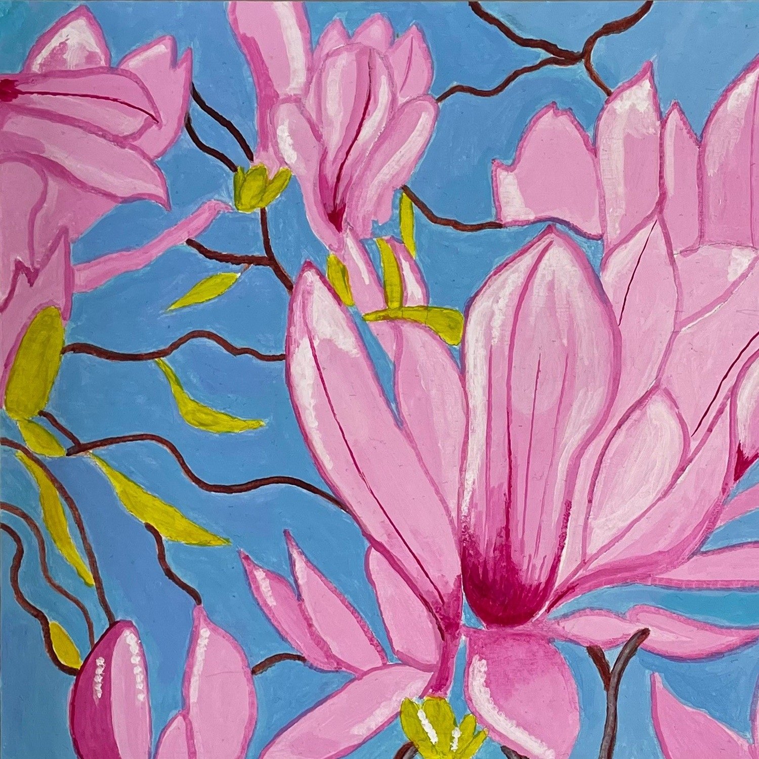 I have been drawing and painting for as long as I can remember. I paint objects from my everyday, with an emphasis on saturated colour and brilliant primaries. My aim is to create feelings of joy, focusing on the simple pleasures of a curving jug or a beautiful bowl.