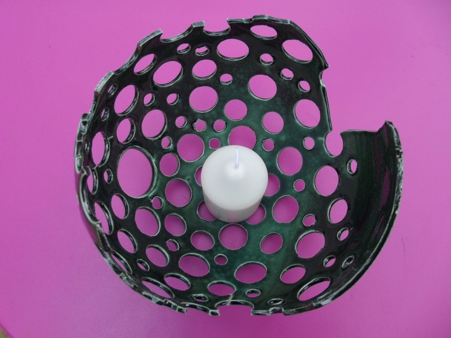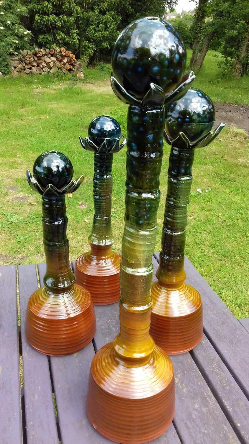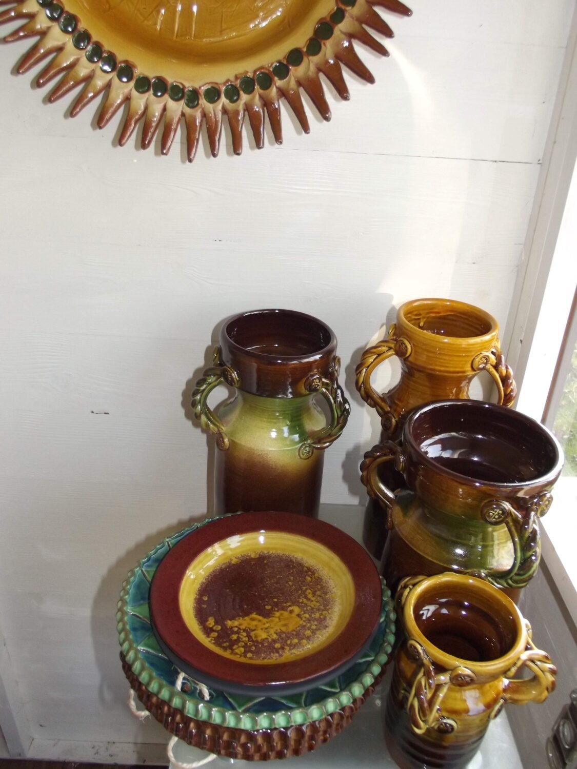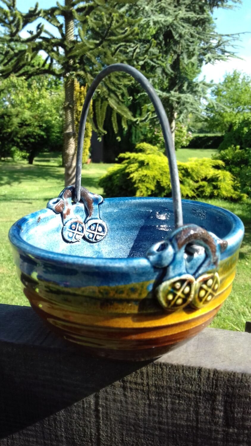 Studio pottery in earthenware, both functional and abstract. Bright colours influenced by Moroccan and English Mediaeval pottery.