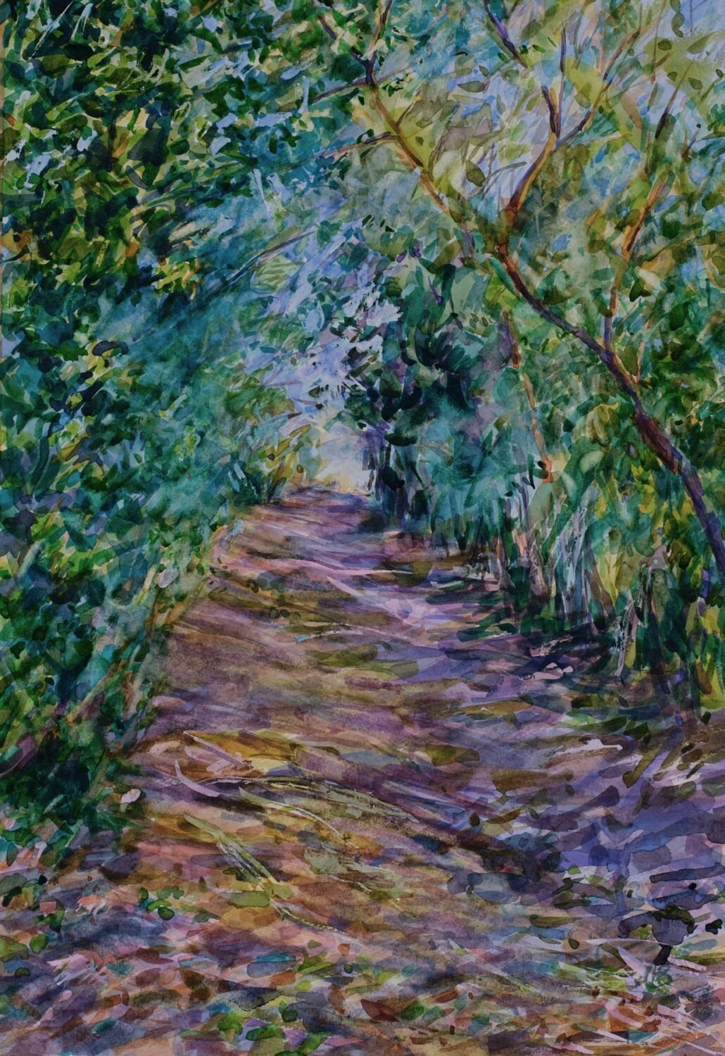 More recently having moved to Suffolk the landscape and trees have become a focus suggesting a theme of journey.