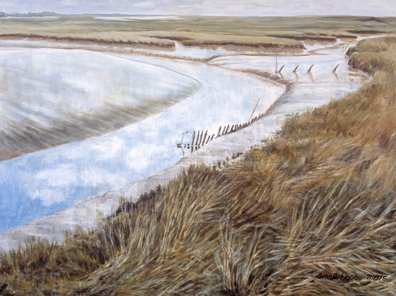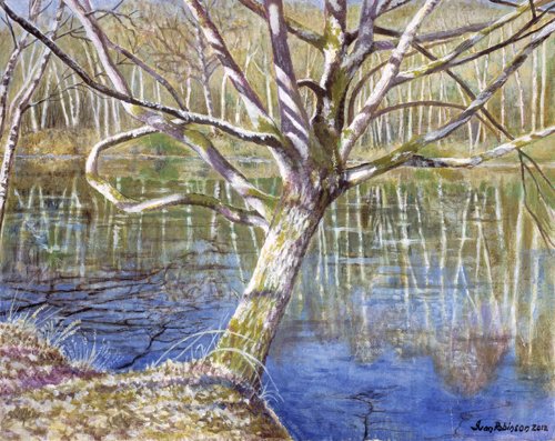 His paintings in oils and acrylics are of landscapes, often of small details or the effects of weather. It is a combination of his interests in geology/geography and art which afford him a unique way of seeing and interpreting landscape.