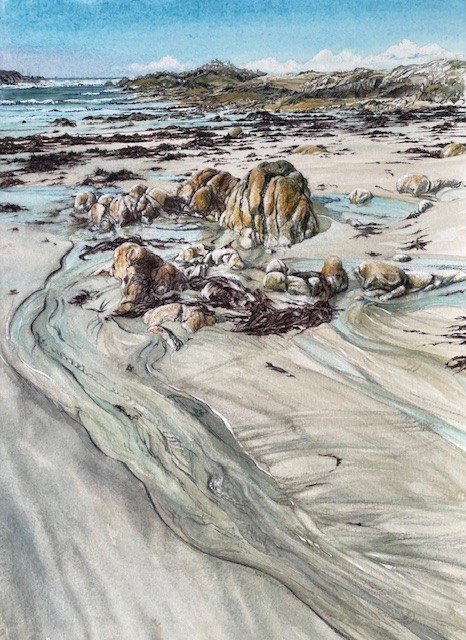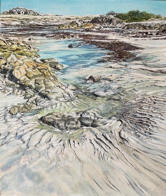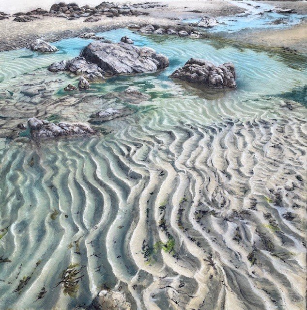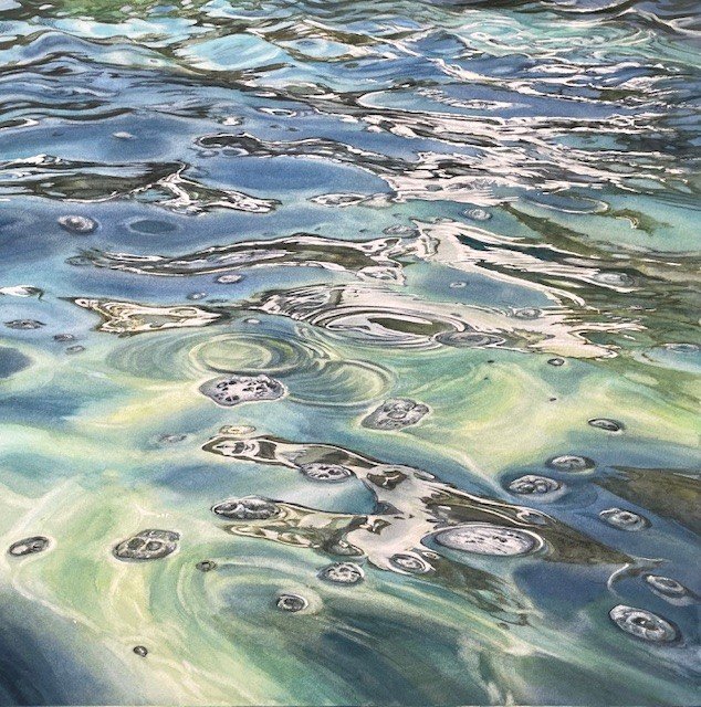 I have now chosen to concentrate purely on working in watercolour and water-soluble crayons, but retain my passion for detail, texture, and capturing the energy of a place, and am loving the freedom of these new mediums. I am fascinated by the play of light on and within water and this features increasingly in my work.