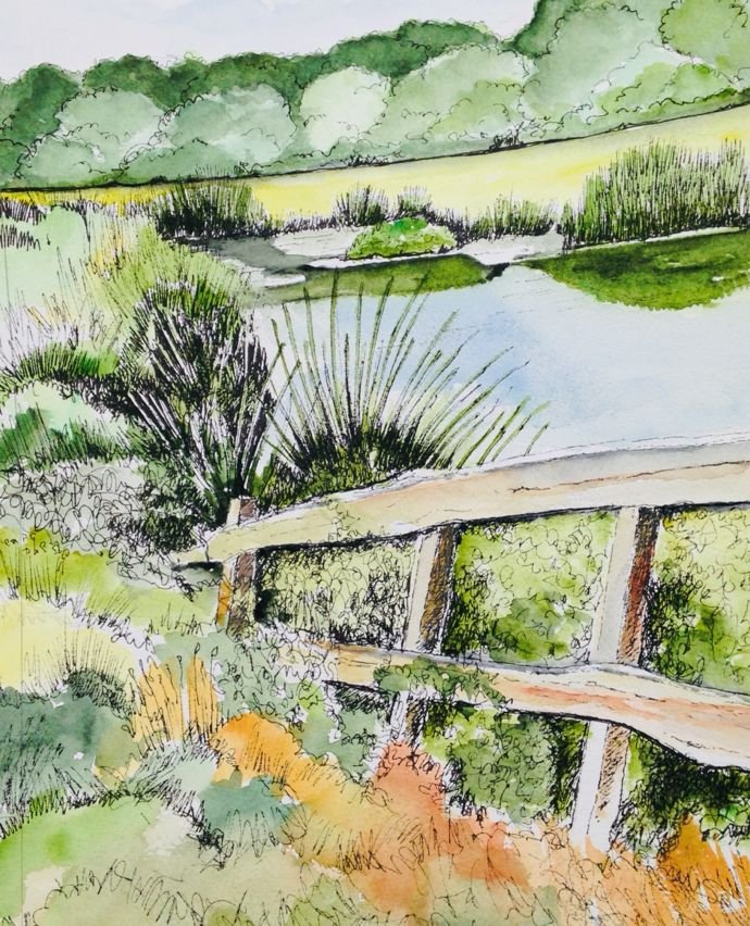 Works in pastel, acrylic and pen and wash to celebrate atmospheric landscapes of Suffolk, based on nature, colour and pattern.