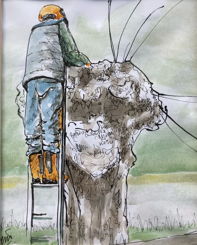 Lorna Hoey, artist and writer, is from Northern Ireland but worked as an art teacher in Switzerland and London for many years before making her home in Suffolk. She is fascinated by the open landscapes and high wide skies, very different from the small fields, stone dykes and rugged coastline of her native County Antrim, and uses the natural world around her as a source of initial inspiration, but enjoys developing sketches and drawings through imagination and experimentation to make her atmospheric paintings. She particularly admires the work of Suffolk artist Harry Becker; his almost intuitive renderings of Suffolk farm labourers have an authenticity that she recognises from her former life among the hill farmers of County Antrim. Lorna's new work includes pen and wash drawings made while out on the water meadows near her home, and landscapes using expressive brushwork to explore the hidden depths of the different seasons and their effect on the countryside around her.