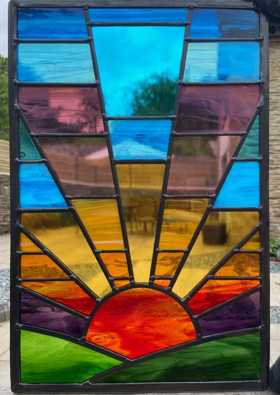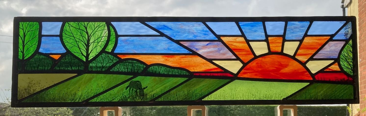 From my garden studio, I design & make bespoke stained-glass windows to commission and create original and unique glass gifts. I also offer a restoration service and run a variety of regular classes. My work is heavily influenced by light & pattern, and I take inspiration from the natural world around me. I use both traditional forms of construction (lead & copper-foil) aswell as incorporating contemporary techniques such as appliqué (mosaic) and fused glass.