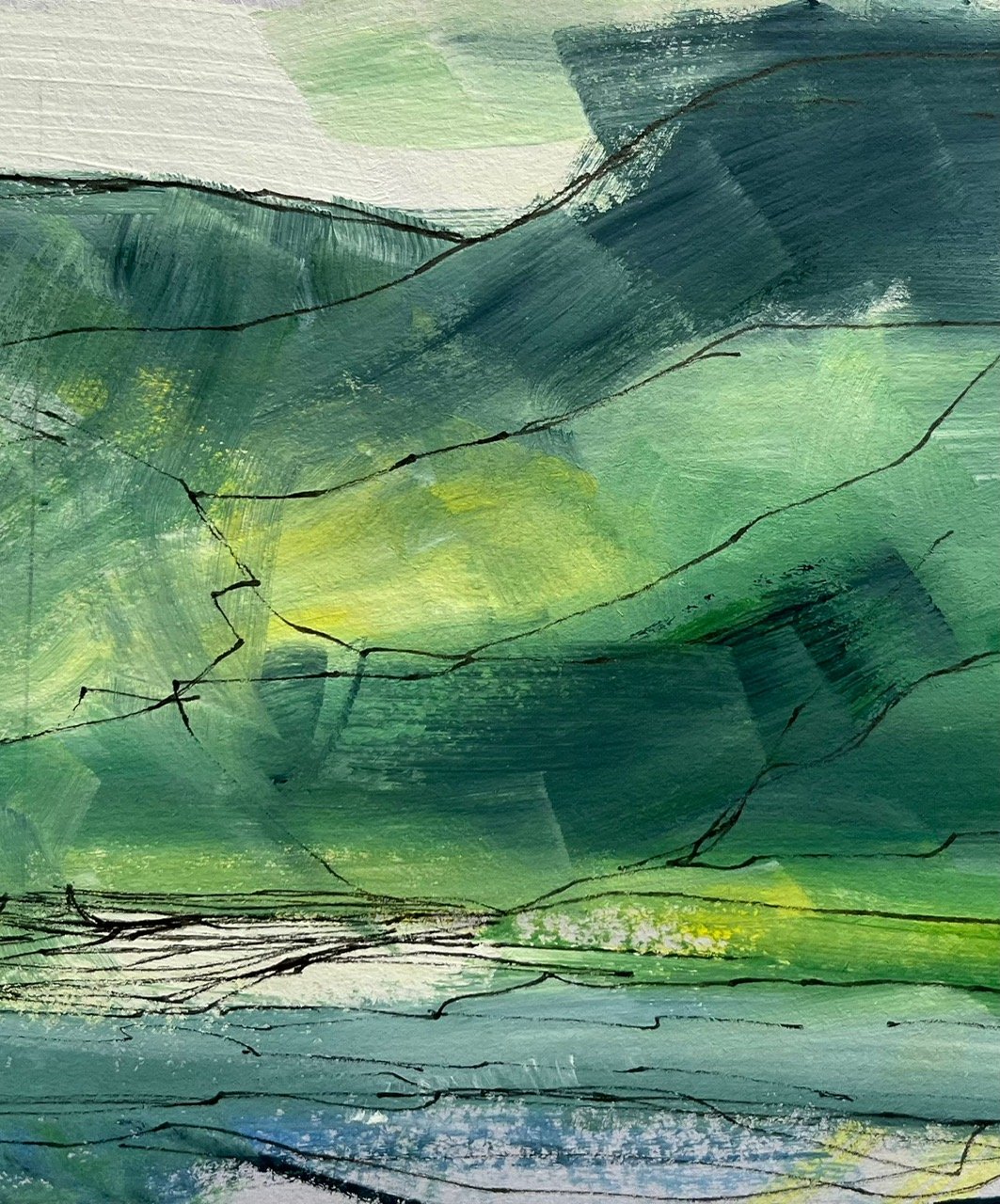 I paint semi abstract landscapes mainly in acrylic, ink or watercolor. I focus on colour, shape and lines which evoke.
