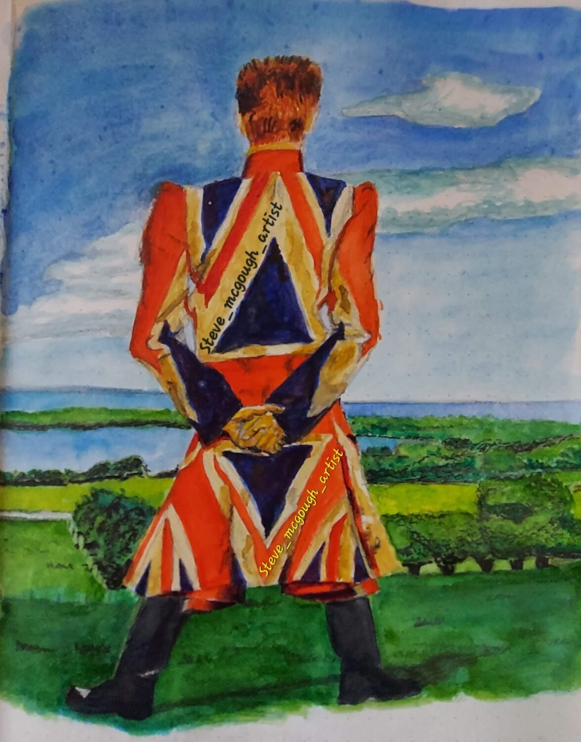 Watercolour with added fineliner is my current media of choice, although I have used oils and gouach in the past and I do love pencil sketches.