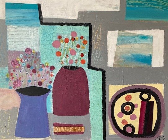 In recent years Susie has concentrated on her porcelain tiles and her mixed media paintings. The latter inspired by her love of ceramics and nature.