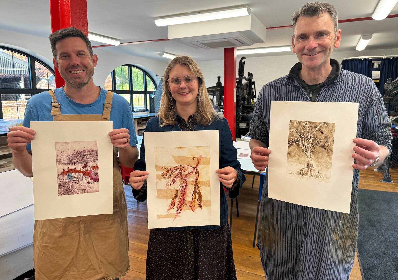 We welcome everyone with free parking adjacent and are wheelchair accessible. Those interested in art and printmaking whether creating or collecting prints, would like to view our archive collection, like to see printmaking demonstrations on historic presses or if you simply would like to come and see what happens in our studios you would be most welcome.
