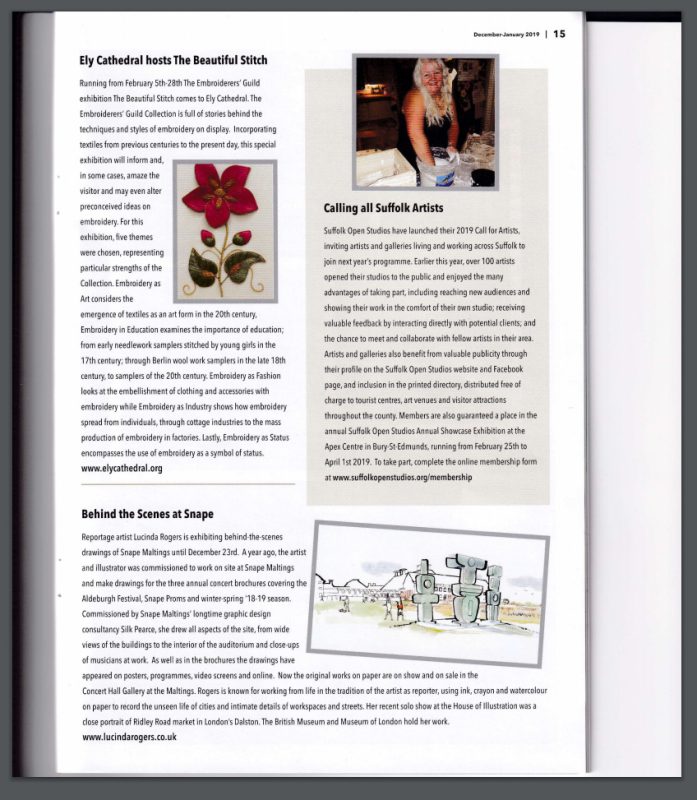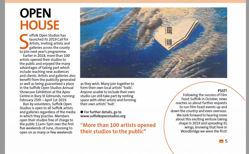 Here are the latest reports from the Press on Suffolk Open Studios. If you would like to feature Suffolk Open Studios in a publication either printed or online, please contact the Press Secretary at press@suffolkopenstudios.org.